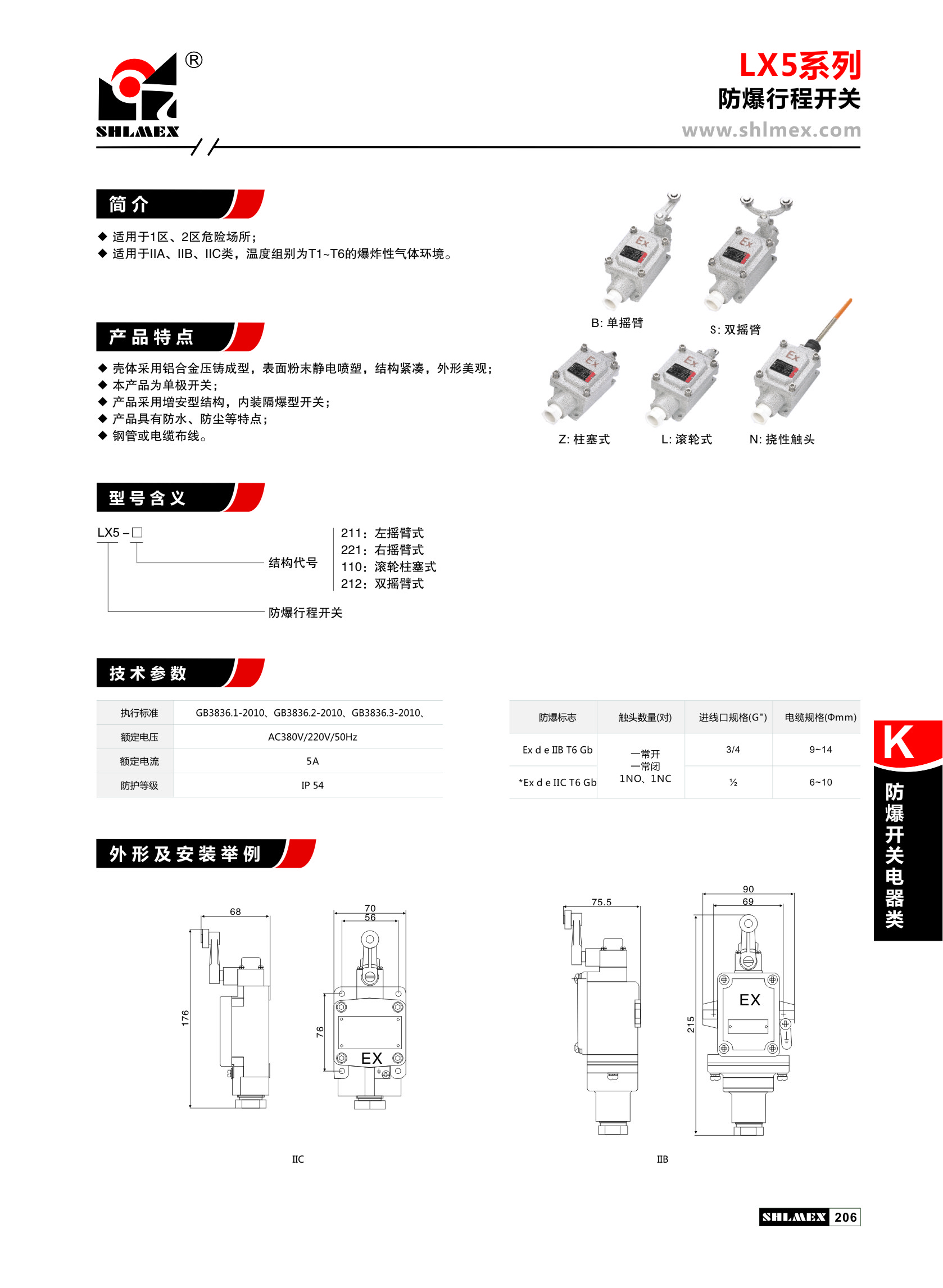 适用于HIA、IB、IIC类,温度组别为T1~T6的爆炸性气体环境。